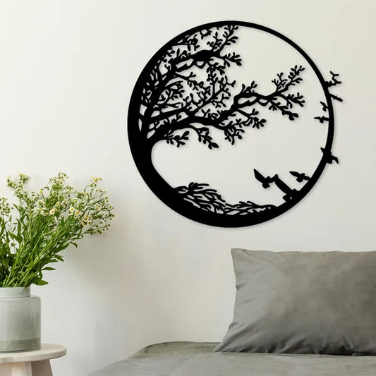 لوحة غصن الشجرة مع الطيور المكونة من أربع قطع