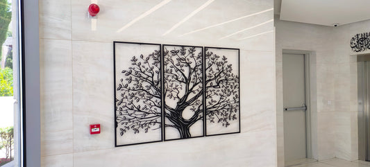 لوحة الشجرة مع أوراق صغيرة المكونة من ثلاث قطع