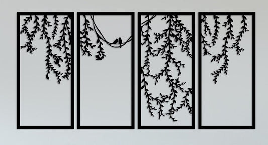 لوحة الأغصان المسدلة مع العصافير المكونة من أربع قطع