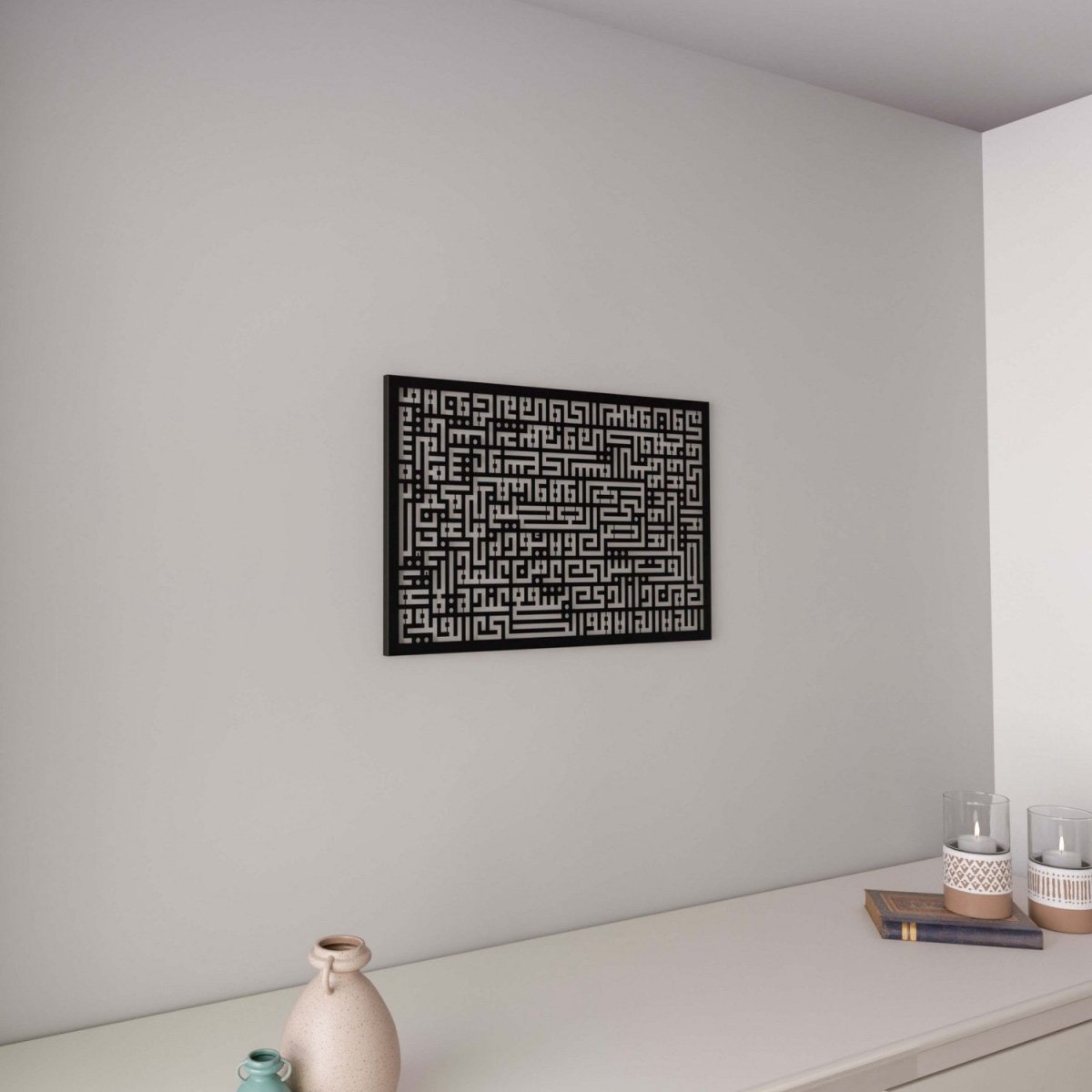 لوحة آية الكرسي بالخط الكوفي المربع الإسلامية
